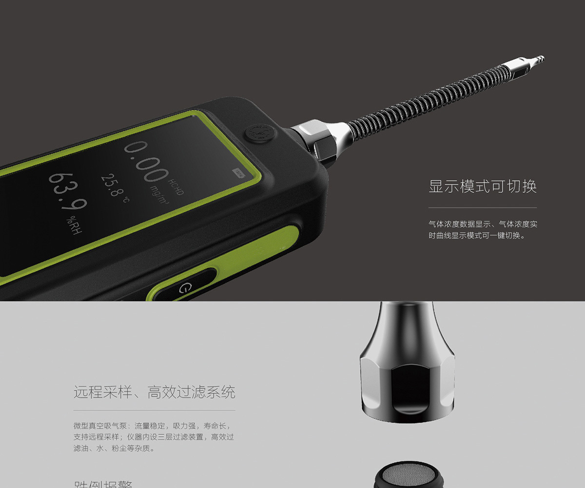 內(nèi)置氣體采樣泵,泵的流量十檔可調(diào),可為不同檢測(cè)環(huán)境定制氣體檢測(cè)流量