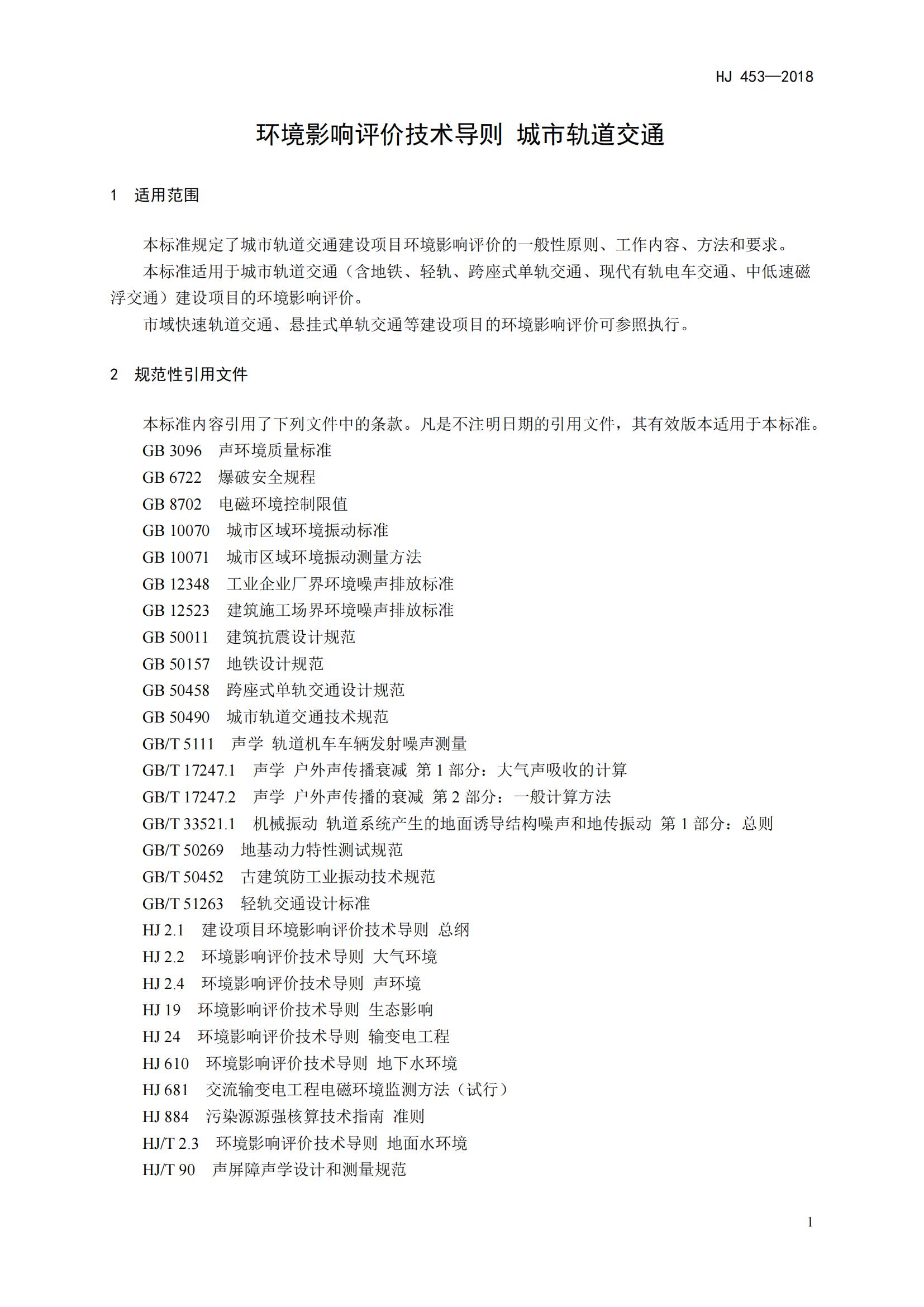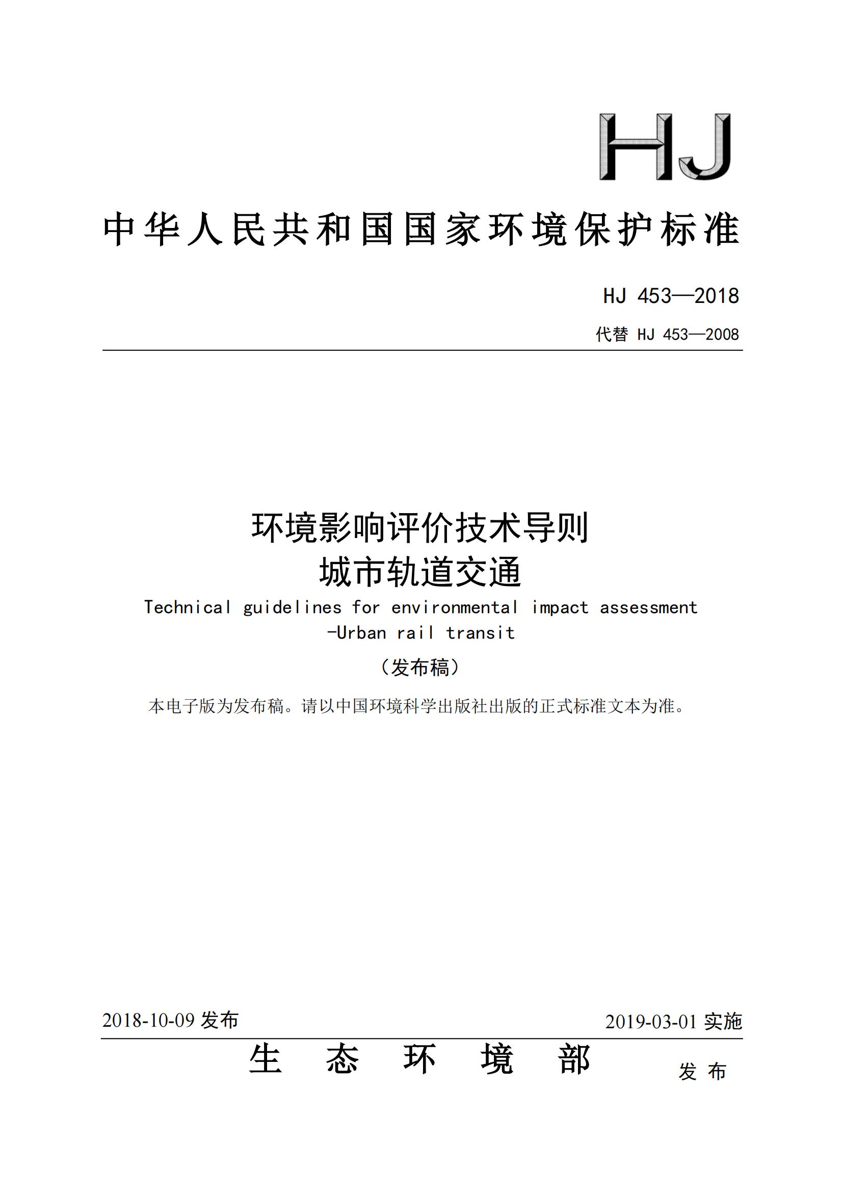HJ 453-2018 《環境影響評價技術導則 城市軌道交通》