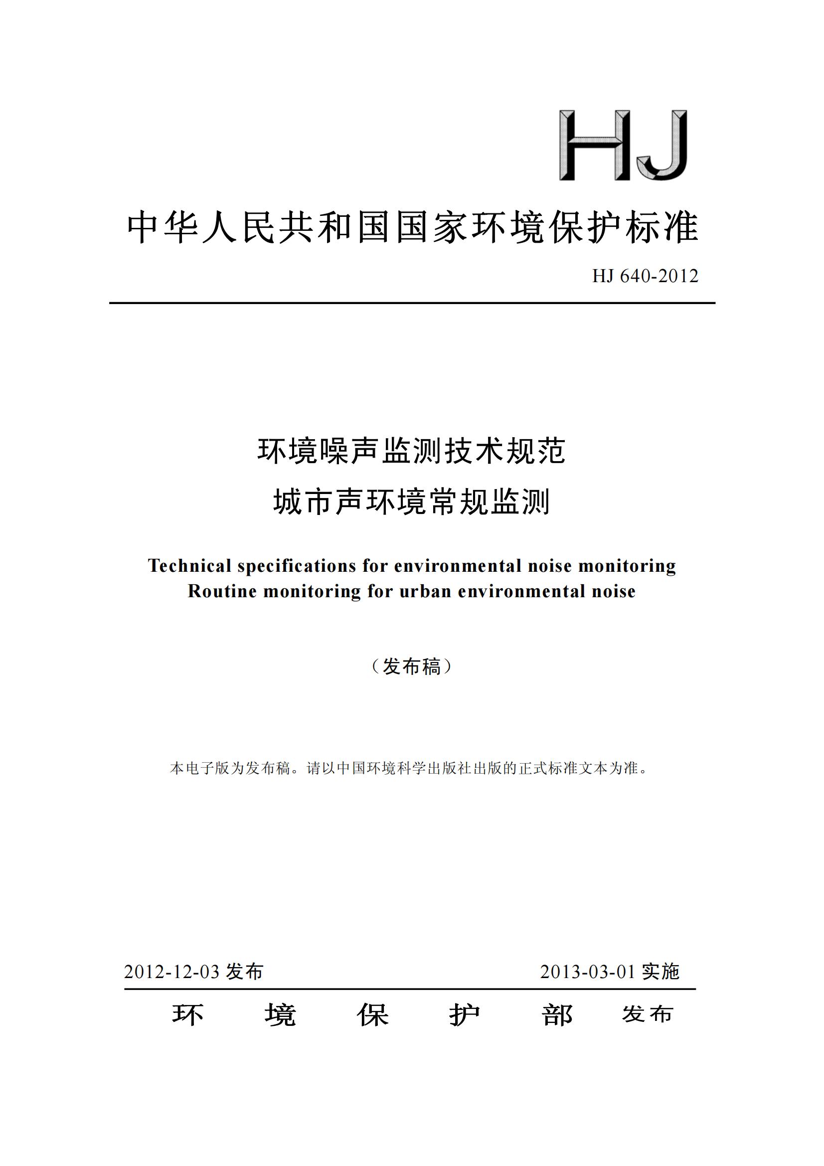 HJ640-2012環境噪聲監測技術規范城市聲環境常規監測