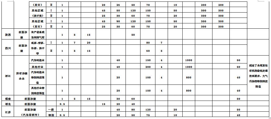 各省市汽車表面涂裝VOCs排放標準匯總及對比