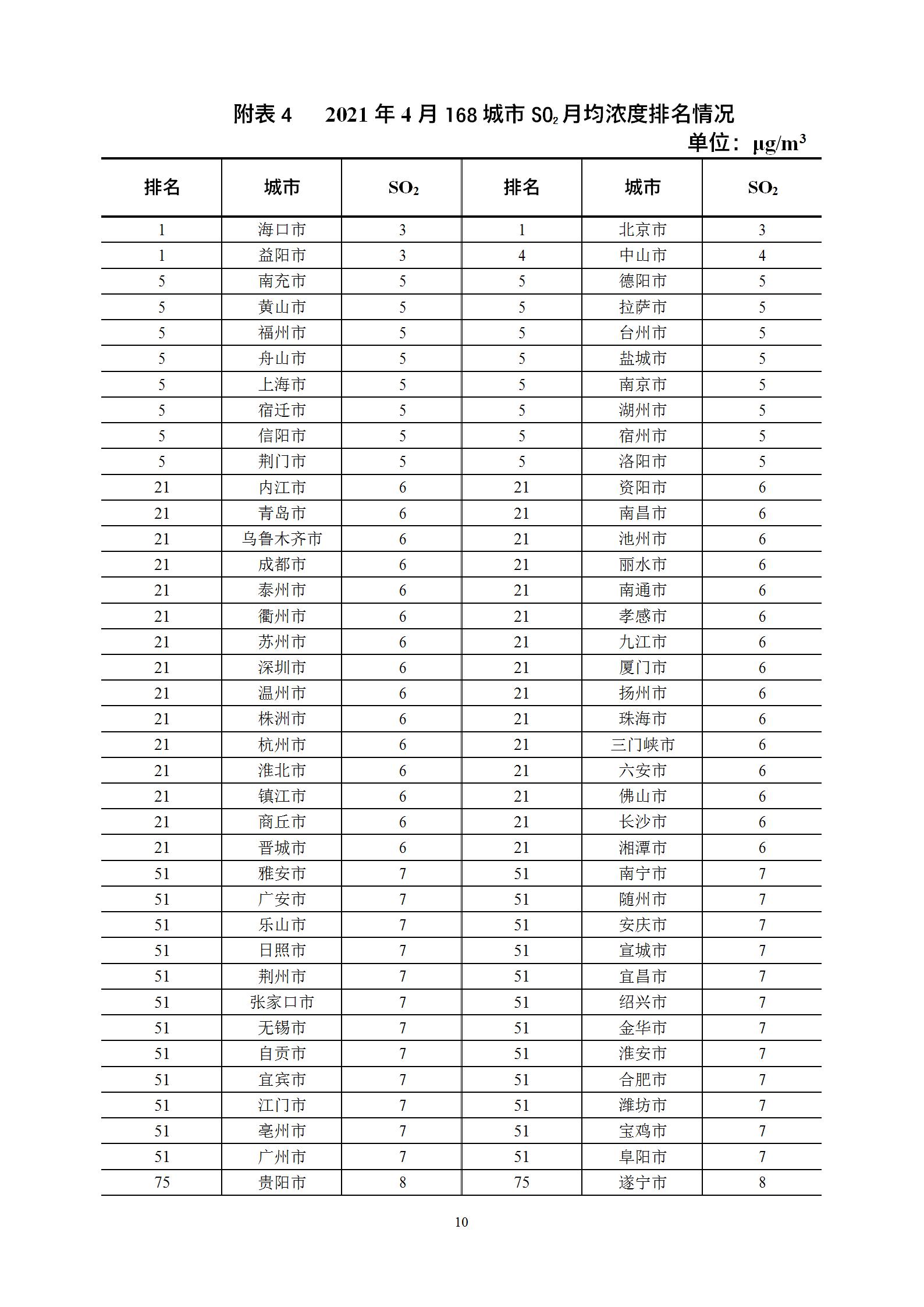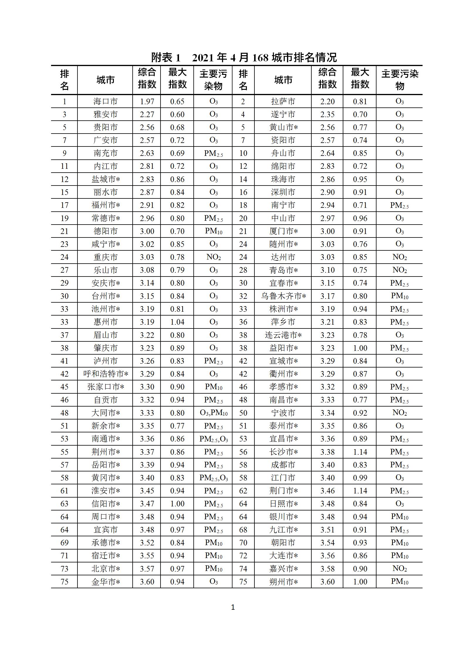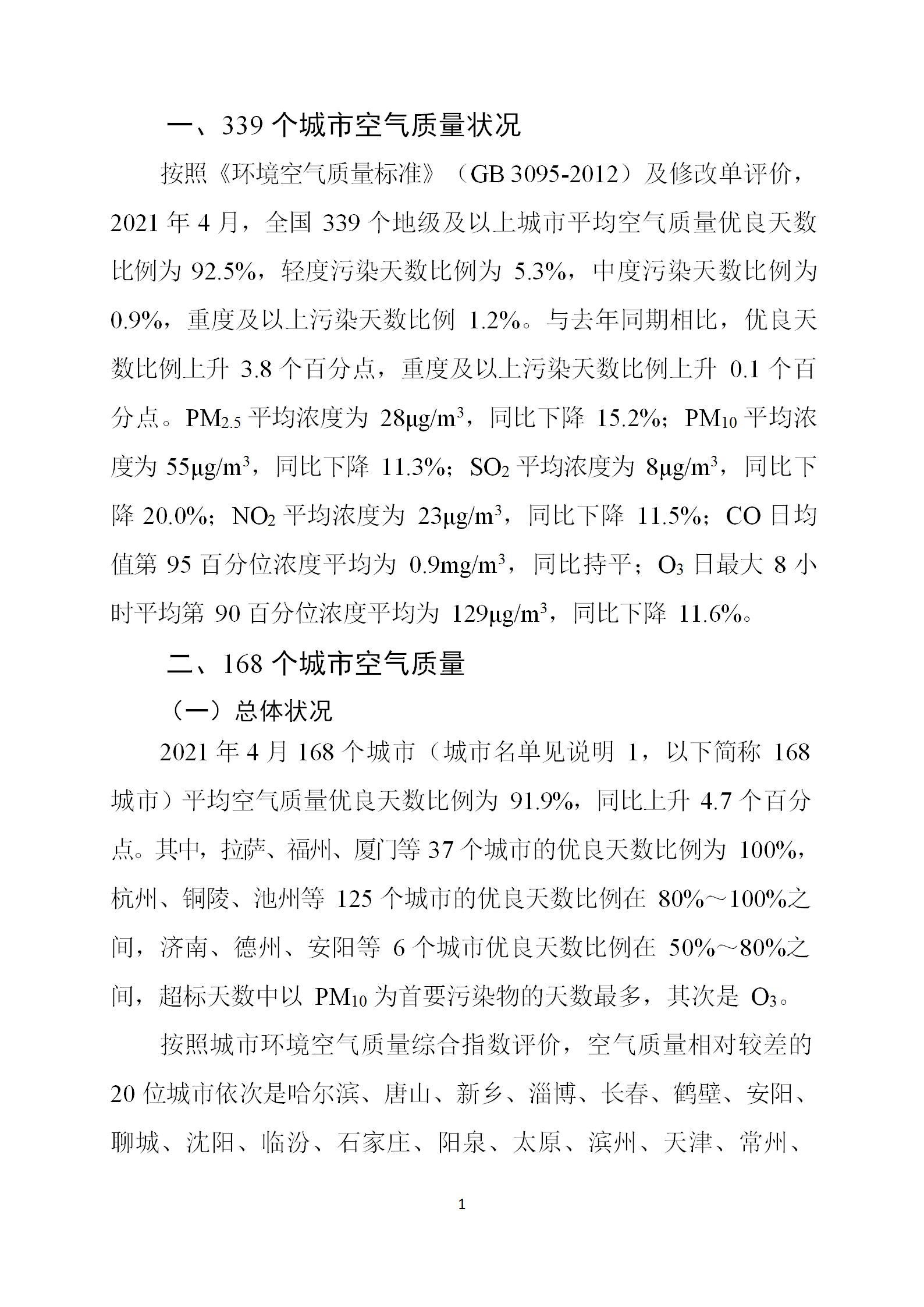 2021年4月全國各城市空氣質(zhì)量監(jiān)測報告