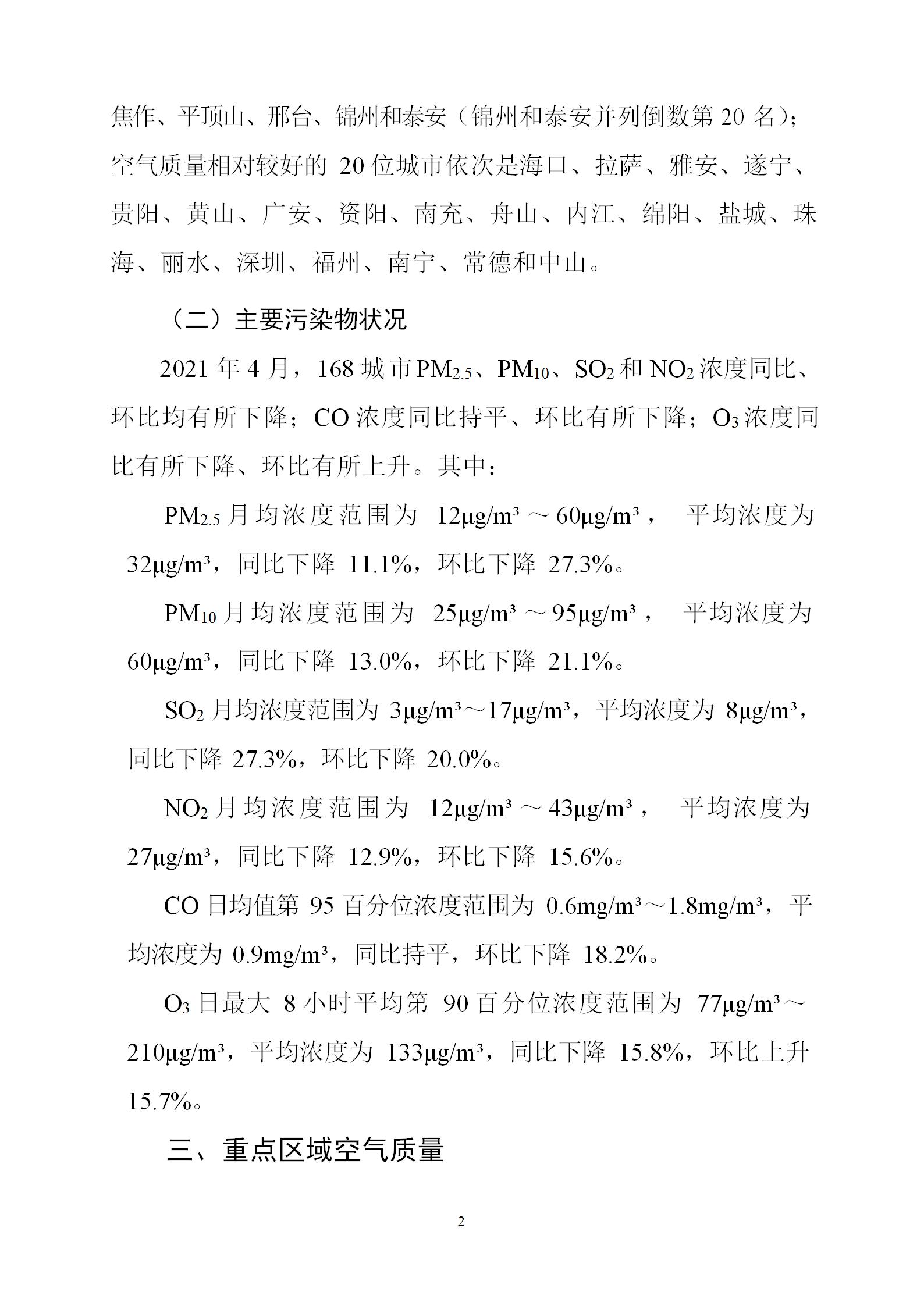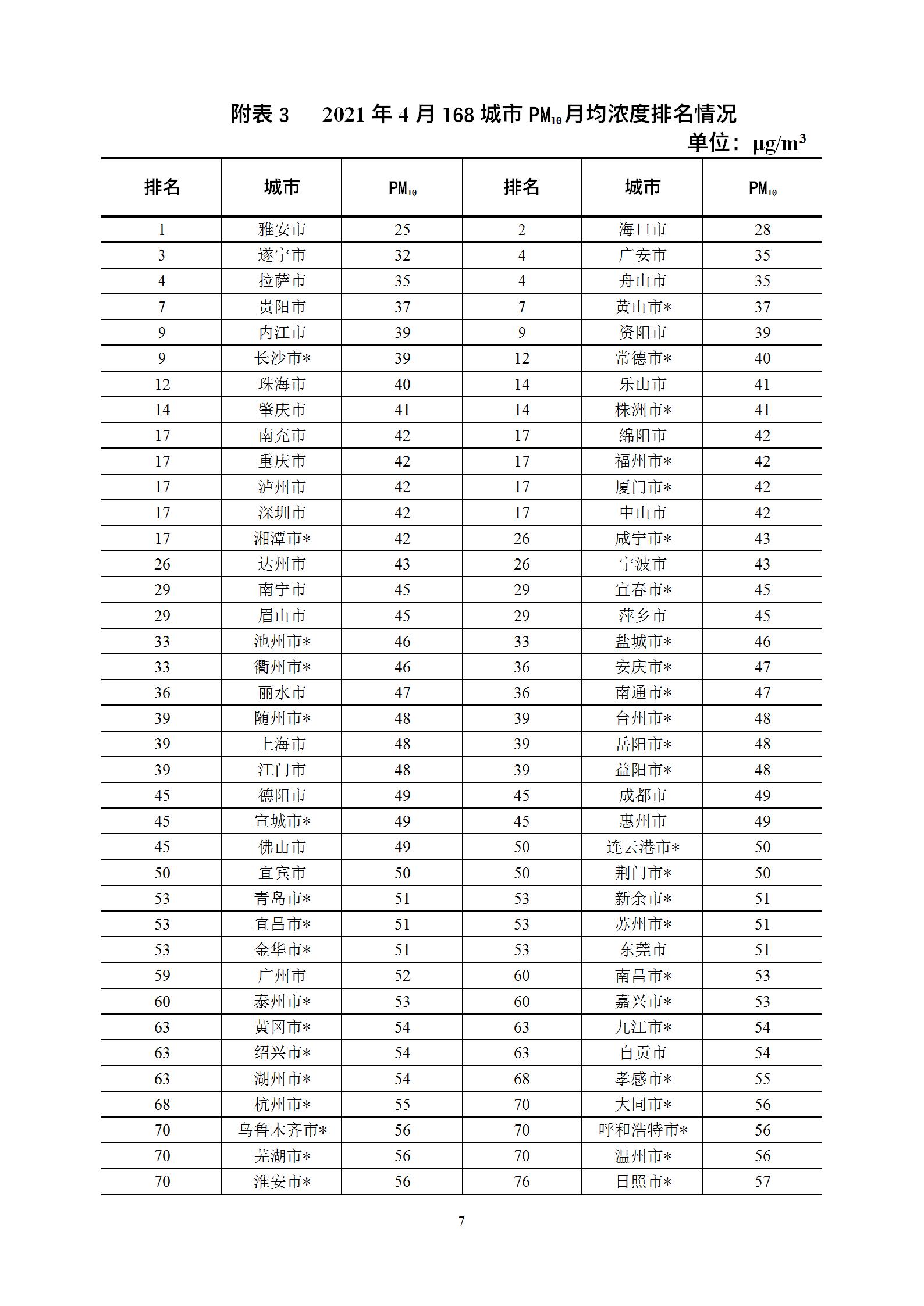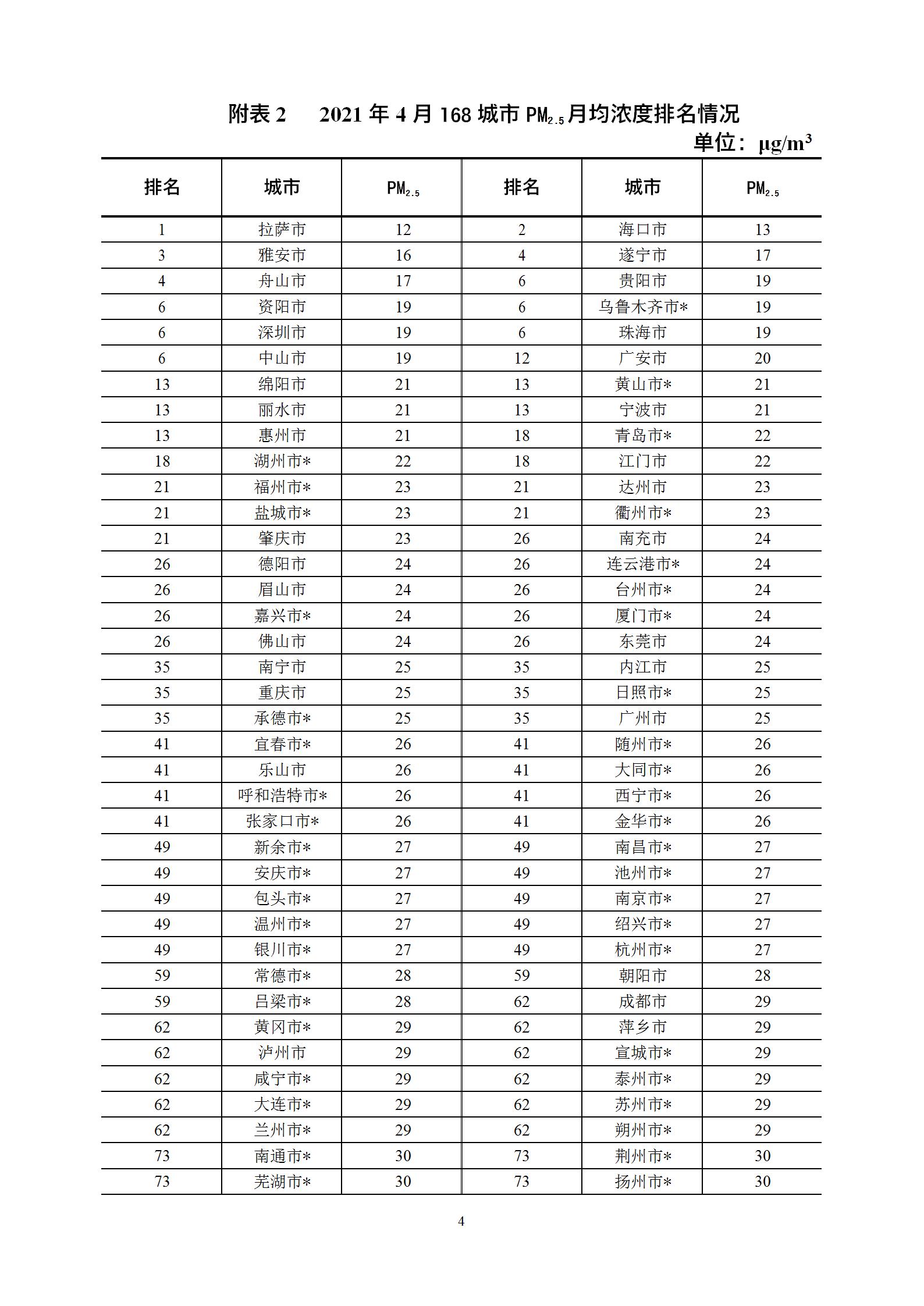 2021年4月全國各城市空氣質(zhì)量監(jiān)測報告