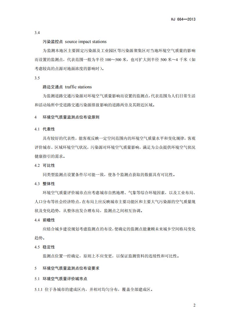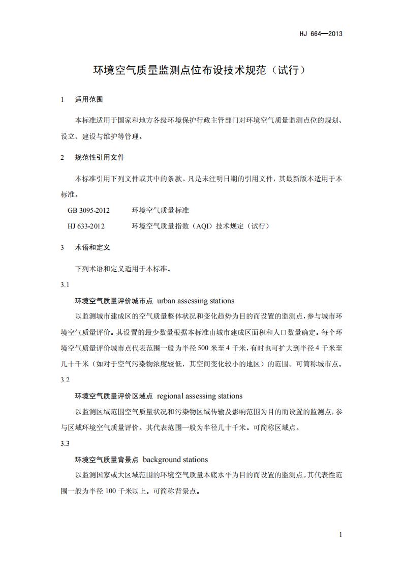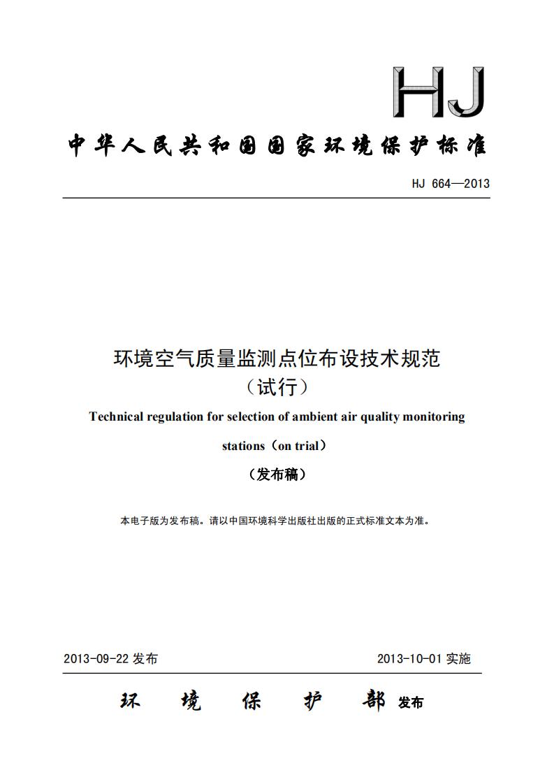 《環境空氣質量監測點位布設技術規范(試行)》(HJ 664-2013)