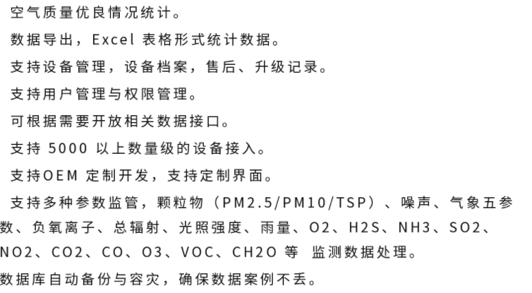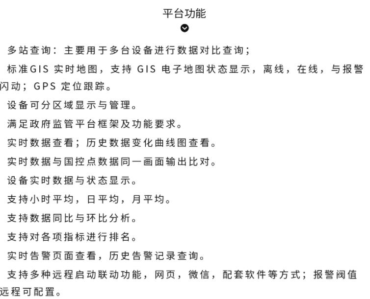 應用 : 企業化工園區,城市環境監測,市政環境監測,移動環境監測,交通污染環境監測居民區/學校/醫院空氣質量環境監測,公園/森林環境監測。