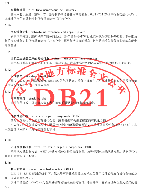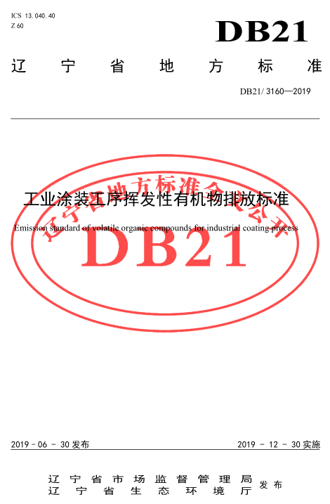 遼寧:工業(yè)涂裝工序揮發(fā)性有機物排放標(biāo)準(zhǔn)(DB21/3160-2019)