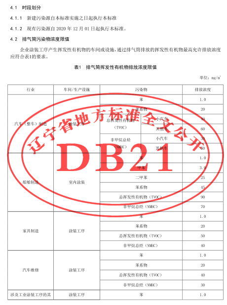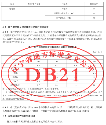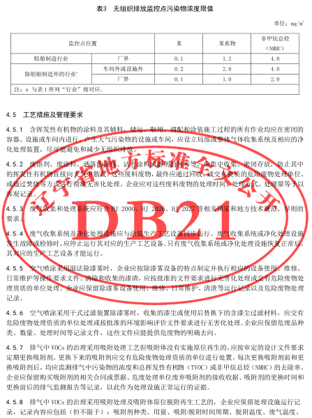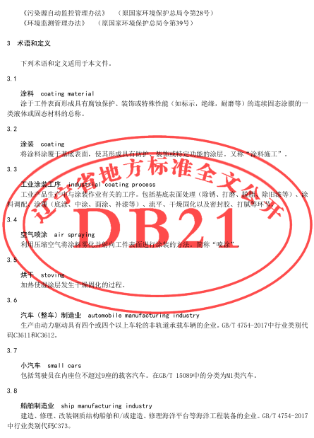 工業(yè)涂裝工序揮發(fā)性有機物排放標(biāo)準(zhǔn)(DB21